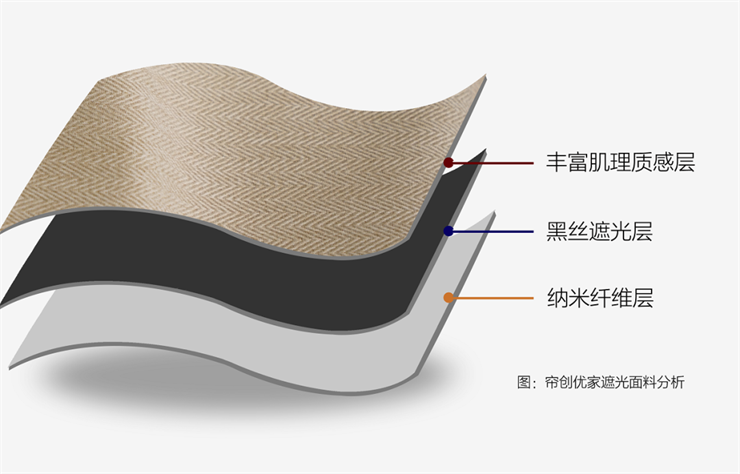 致力于高品质窗帘的设计与加工,香蕉视频污版在线观看优家的三织遮光面料,面料正面纯色棉麻质感层,中间黑丝遮光层,底层是纯色纳米纤维面料,三层物理遮光。