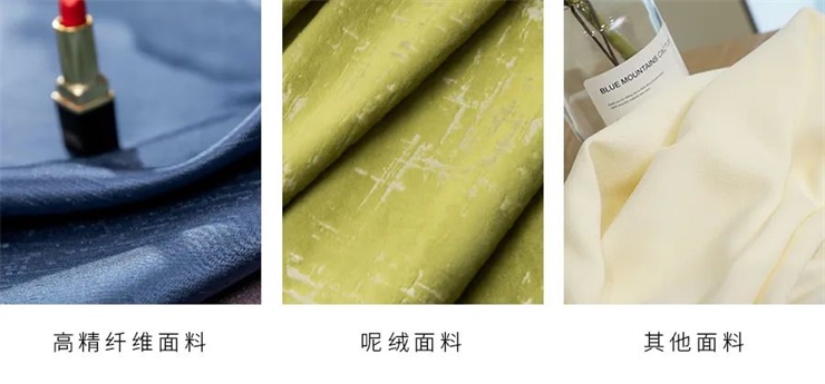 高精纤维面料,具有较高的强度与弹性恢复能力;呢绒面料,面料致密,阴影纹理效果,更是体现极强的品质感;其他面料,活力轻盈,手感细腻,有着自己独到的特点。