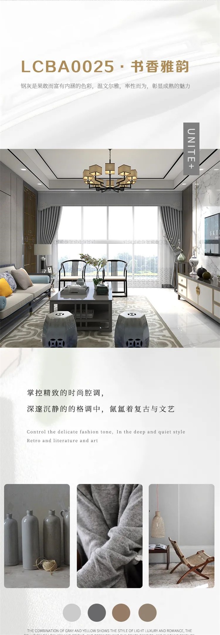 以钢灰色为窗帘主色调,