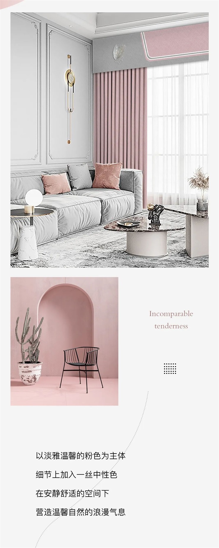 以淡雅温馨的粉色为主体,