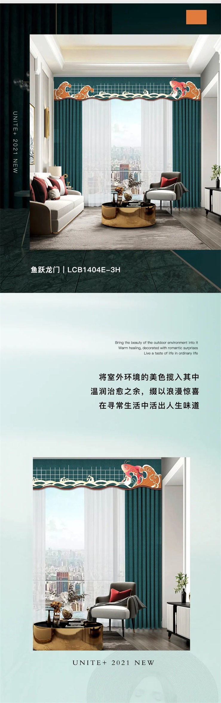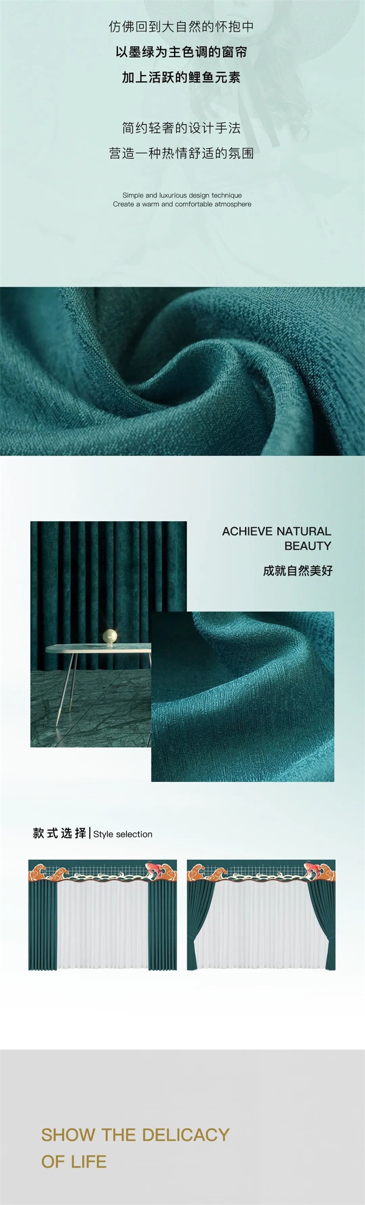 以墨绿为主色调的窗帘,