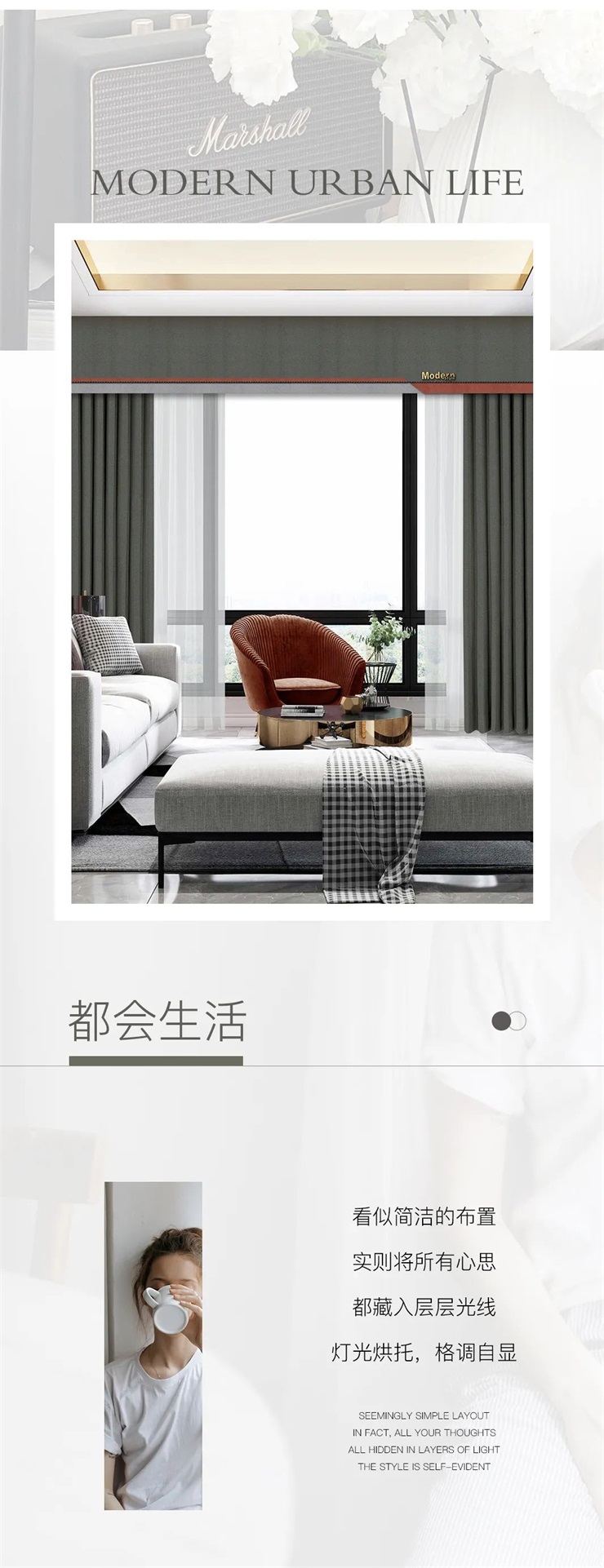 整体高级灰的窗帘色调,