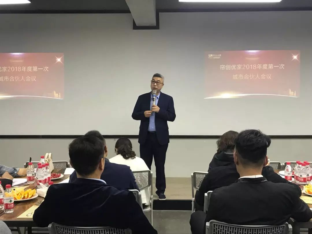 叶上富线上正在讲台上激情高昂给加盟商们进行香蕉免费视频APP只是培训演讲,